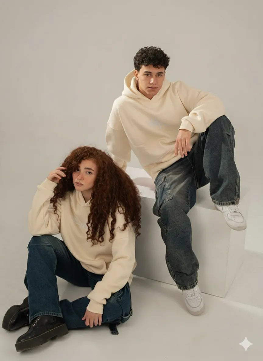 • Classic Beige Plain Hoodie – Baggy Fit